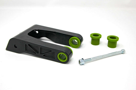 Kit includes new self lubricating bushings and a single Bolt (grade 8) through mount replacing the two OEM bolts.