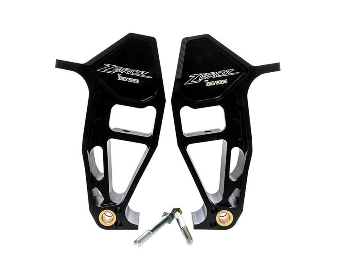 Our Traverse Billet Spindles are offset to allow for more width adjustments of the ski for specific riding conditions, now you can go narrower than standard 36”. An additional 3/8” ski spacer is included to allow more ski position adjustment and allows your stance to be narrowed by a total of 5/8”. We know that each rider and where they ride is different. Compatible with 39” & 36” front ends. Remember, ZBROZ came out with the very first 36” kit and started the trend! FEATURES INCLUDE: • Lighter & Stronger than OEM • CNC Machined • Improved Geometry for 36” Wide Stance