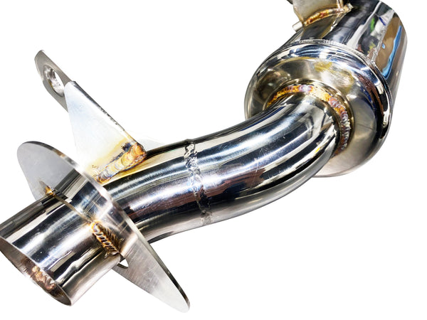 RPM's Race Weight pipe is not just light weight at only 8 Lb.'s, but it also provides phenomenal increase in throttle response while providing a staggering 3HP gain. This is a full stainless muffler that is a easy installation and direct fit to the stock OEM expansion chamber. The muffler body is 4", this pipe sounds great but is by no means "quiet". Great for racing, mountain riding, or lower populated areas. Great sound, the best performance, and fantastic weight savings! What more could you ask for!?