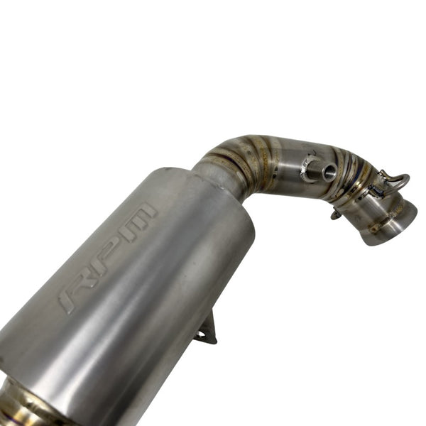 RPM's Race Weight pipe is not just light weight at only 3.5 Lb.'s, but it also provides phenomenal increase in throttle response while providing a staggering 3HP gain. This is a full titanium muffler that is a easy installation and direct fit to the stock OEM expansion chamber. The muffler body is a 4" OD body & this pipe sounds great but is by no means "quiet". Great for racing, mountain riding, or lower populated areas. Great sound, the best performance, and fantastic weight savings! What more could you ask for!? If you're looking for a quieter option, check out our PRM Chambered Muffler line up!